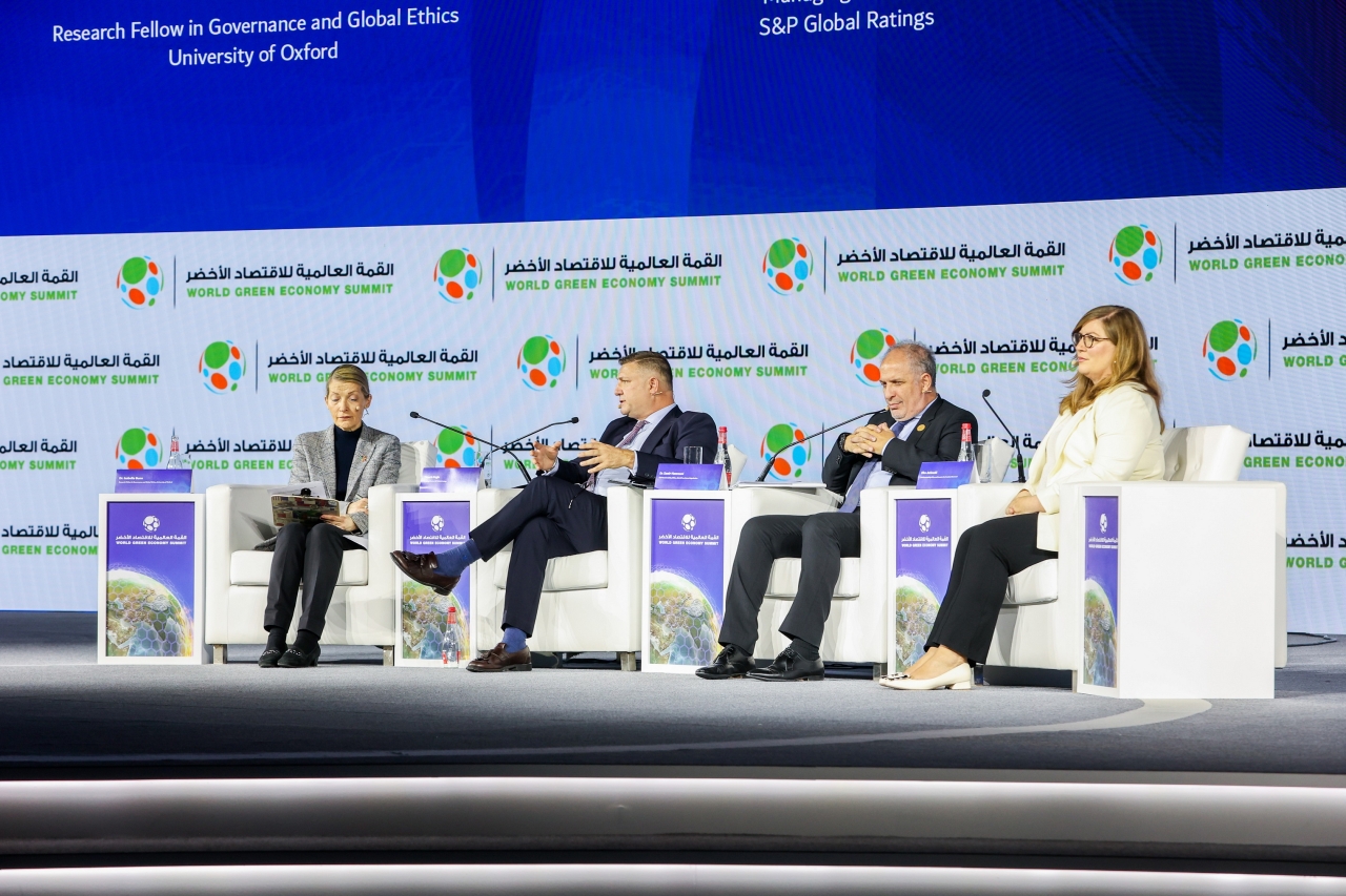 أهمية البنية التحتية والموثوقية والقوى العاملة الماهرة»، ناقش المتحدثون فيها كيفية التغلّب على التحديات التي تواجه الانتقال إلى الطاقة الخضراء. وقدّم جيروم أوشيري مدير أول في المنظمة العالمية للاقتصاد الأخضر، عرضاً تقديميّاً بعنوان «الدور الحيوي للاقتصاد الأخضر في تعزيز العمل المناخي: أنشطة المنظمة العالمية للاقتصاد الأخضر خلال مؤتمر الأطراف (كوب28)»