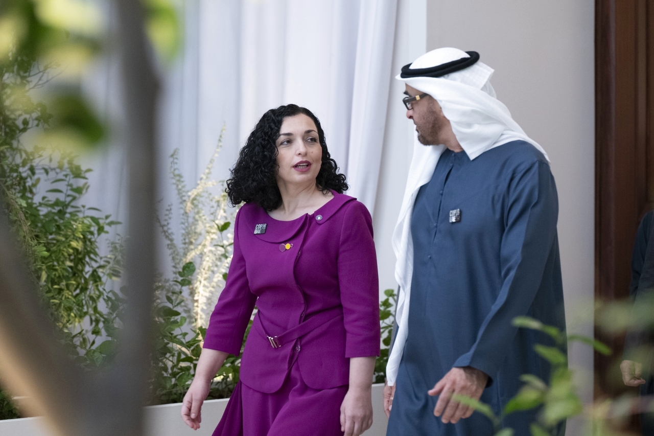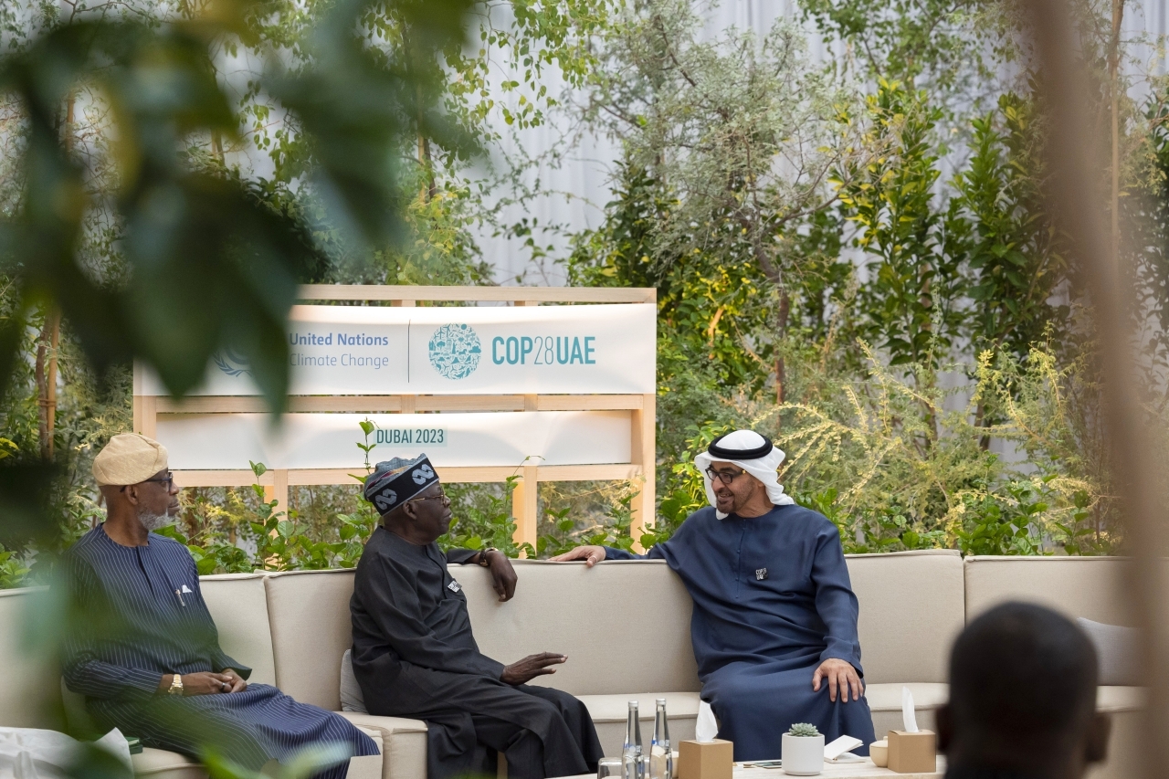 واصل صاحب السمو الشيخ محمد بن زايد آل نهيان، رئيس الدولة، حفظه الله، لقاءاته مع قادة الدول ورؤساء الوفود المشاركين في مؤتمر الأطراف في اتفاقية الأمم المتحدة الإطارية بشأن تغير المناخ «COP28»، الذي يعقد في مدينة إكسبو دبي، فقد التقى سموه- كلاً على حدة - الدكتور ويليام ساموي روتو رئيس جمهورية كينيا، وبولا أحمد تينوبو رئيس جمهورية نيجيريا الاتحادية، وفيوسا عثماني رئيسة جمهورية كوسوفو.