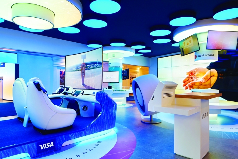 وبخاصة في قطاع الخدمات المصرفية للأفراد. ويكمن التحدي الذي يواجهه القطاع المصرفي للمستقبل القريب في تعديل المستويات المتعددة من تمكين خدمات المستهلكين في تحقيق التوازن المثالي بين التقنيات الرقمية والتفاعل البشري في قنوات التعامل مع العملاء، ومن الأمثلة على ذلك بنك المشرق الذي يستعد ليكون بنكاً بلا فروع بحسب رئيسه التنفيذي عبد العزيز الغرير. ففي المستقبل ستجرى 95% من العمليات خارج الفروع إلا أن فكرة البنك بلا حدود لا تزال غير موجودة اليوم».