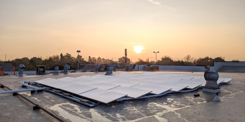 ألواح تبريد جديدة تم تثبيتها فوق سوبر ماركت للبقالة في كاليفورنيا، أخيراً، تعتمد على ما يسمى بتكنولوجيا التبريد الإشعاعي، تستند على إرسال الحرارة عبر الغلاف الجوي مع خفض درجات حرارة الهواء بالقرب من موقع تثبيت الألواح، بمقدار 10 درجات بمقياس فرنهايت، وهو ما يعادل 12 درجة مئوية.