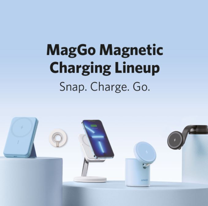بطاريـة "آنكـر" المغناطيسيّة (مـاج جـو MagGo): بطارية شحن مغناطيسية محمولة يمكن تحويلها بسهولة إلى حامل للهاتف من خلال قلب المسند القابل للطيّ المُدمج بها - مما يتيح للمستخدمين تثبيت أي جهاز آيفـــون متوافق مع تقنية "ماج سيف MagSafe" في وضع أفقـيّ أو رأسـيّ. وبفضل قوتها التي تصل إلى 5000 مللي أمبير في الساعة؛ يمكنها إطالة عمر بطارية أجهزة الآيفـون 12 أو 13 لمدة تصل إلى 17 ساعة، و بسرعة شحن قصوى تبلغ 7.5 واط. وتتوفر بطارية آنكـــر المغناطيسية بسعر 299 درهم.
