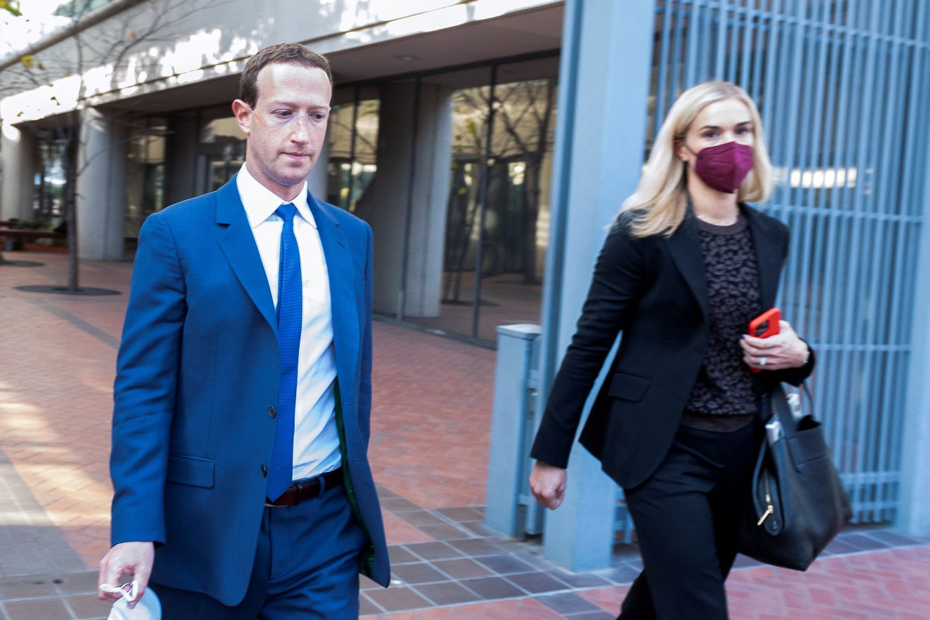 ومثُل زوكربيرغ مرتديا حلة زرقاء وكمامة بيضاء ونظارة أمام المحكمة الاتحادية في سان هوزيه بولاية كاليفورنيا للدفاع عن استحواذ ميتا على مطورة تطبيقات الواقع الافتراضي (ويذين).