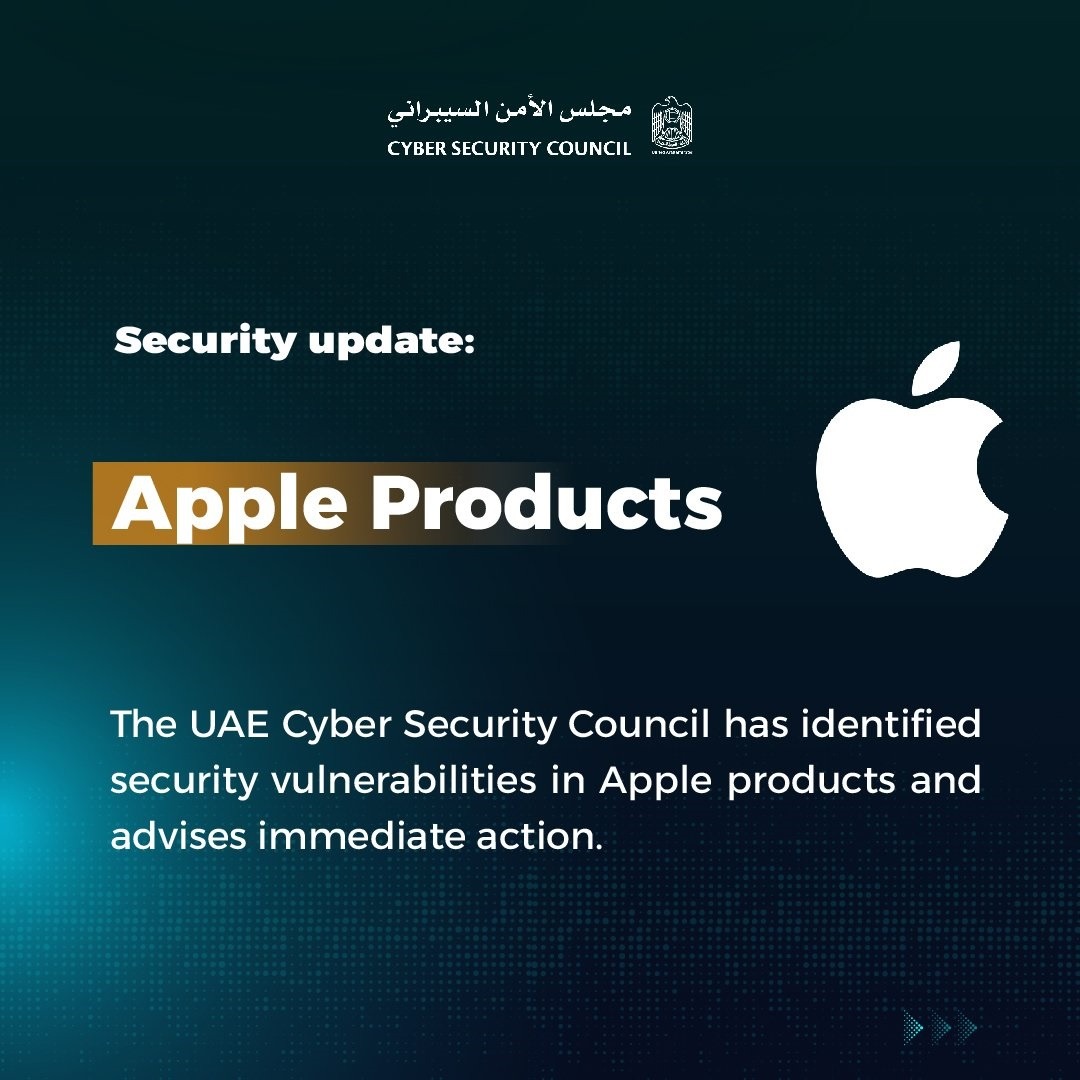حذر مجلس الأمن السيبراني لحكومة الإمارات من عدة ثغرات في أنظمة التشغيل في أجهزة أبل، مؤكداً أنها تحمل ثغرات تسمح للمهاجم بالتحكم في الأجهزة.