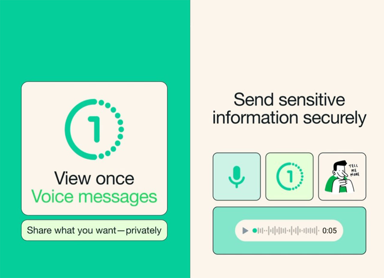 ونشر تطبيق واتساب عبر منصاته في وسائل التواصل الاجتماعي واتساب رسالة يقول فيها: "قلها مرة واحدة، قم بتشغيلها مرة واحدة، الآن يمكنك تحديد "عرض مرة واحدة" عند إرسال ملاحظة صوتية للحصول على ميزة إضافية من الحماية".
