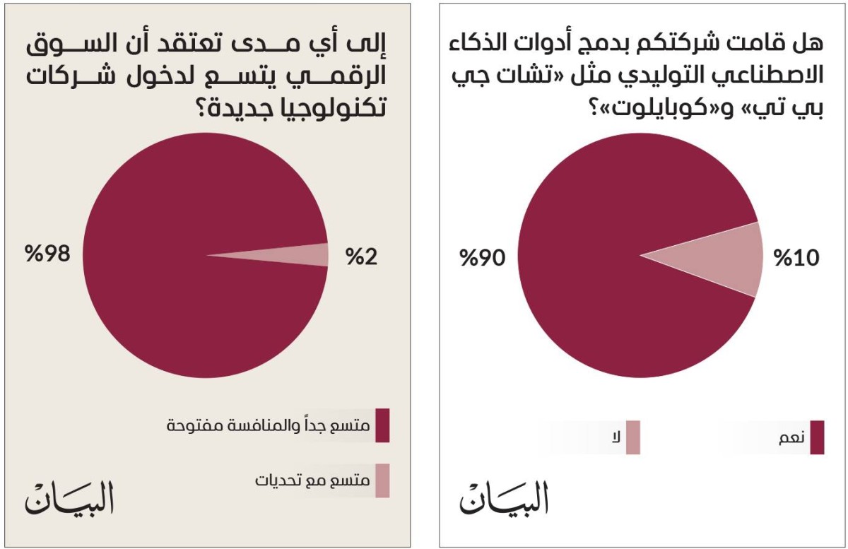ويعكس هذا التقييم الاستثمارات المستمرة في شبكات الاتصالات ومراكز البيانات والخدمات السحابية. في حين قيّمها 1 % بأنها «جيدة جداً»، وهذا يؤكد وجود قاعدة رقمية صلبة تدعم نمو الشركات التكنولوجية.