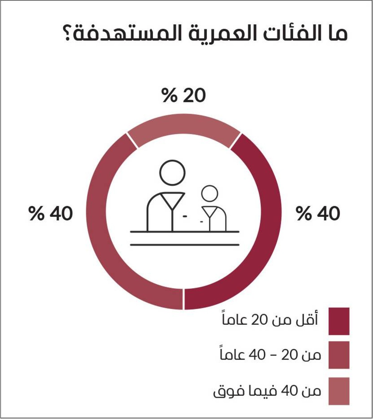 وعن الفئات العمرية التي يستهدفونها أكثر في منتجاتهم وفي التسويق لها قال 40 % إنهم يستهدفون من هم أقل من 20 عاماً، و40 % يستهدفون من هم بين 20 و40 عاماً، و20 % يستهدفون من هم في سن 40 عاماً فأكثر.