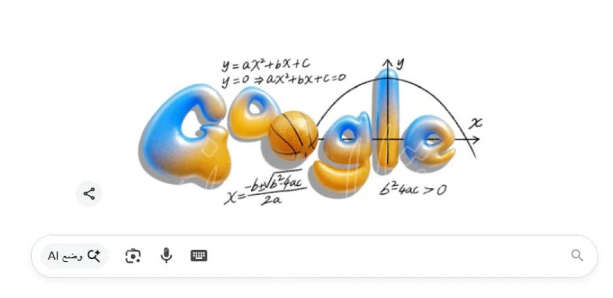 يُطلق "جوجل" احتفالاً غير مألوف على صفحته الرئيسية، يحوّلها من مجرد بوابة بحث إلى قاعة تدريس للفيزياء التطبيقية. بطل هذا الاحتفاء هي المعادلة التربيعية (y = ax² + bx + c)، والمرتبطة بشكل مباشر بمسار كرة السلة.