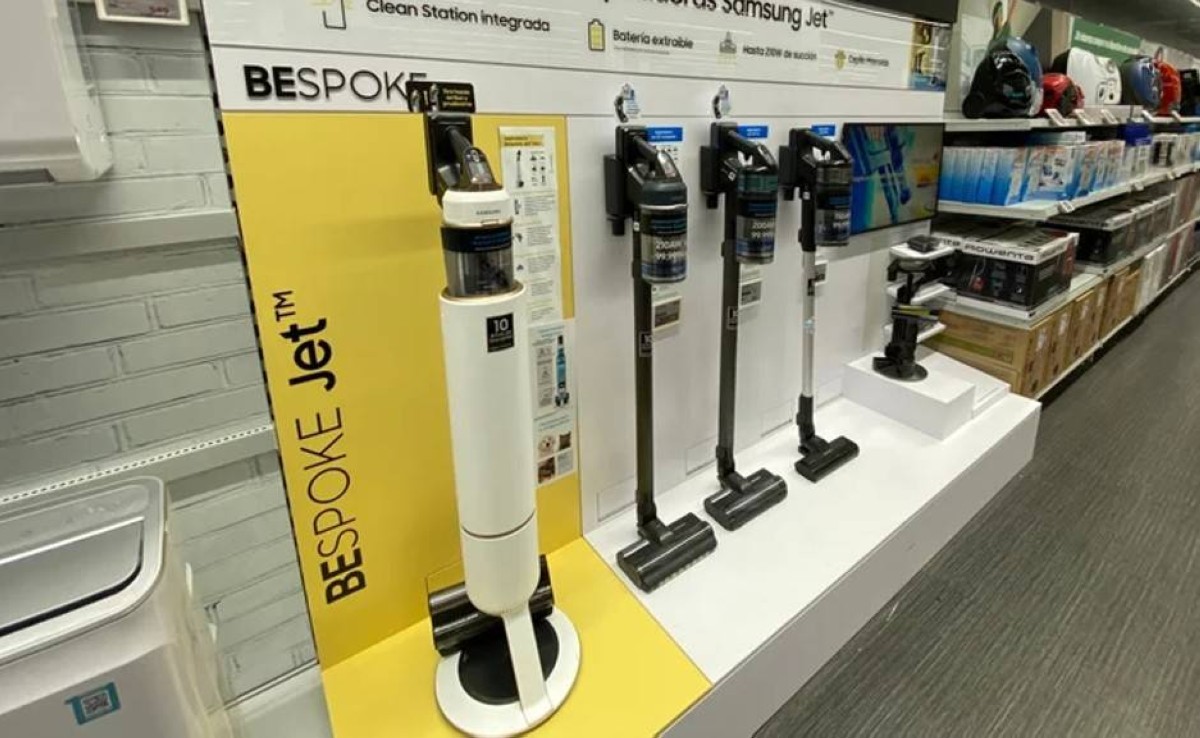 سامسونج تبيع مكانس كهربائية ذكية مثل Bespoke AI Jet Stick، بميزات ذكاء اصطناعي لتحديد نوع الأرضية وضبط الطاقة ووقت التشغيل، الطراز Lite يعمل 60 دقيقة وUltra 100 دقيقة، وكلاهما مزود بمحطة تنظيف تفريغ تلقائي وغرف تحكم بالواي فاي والبلوتوث.