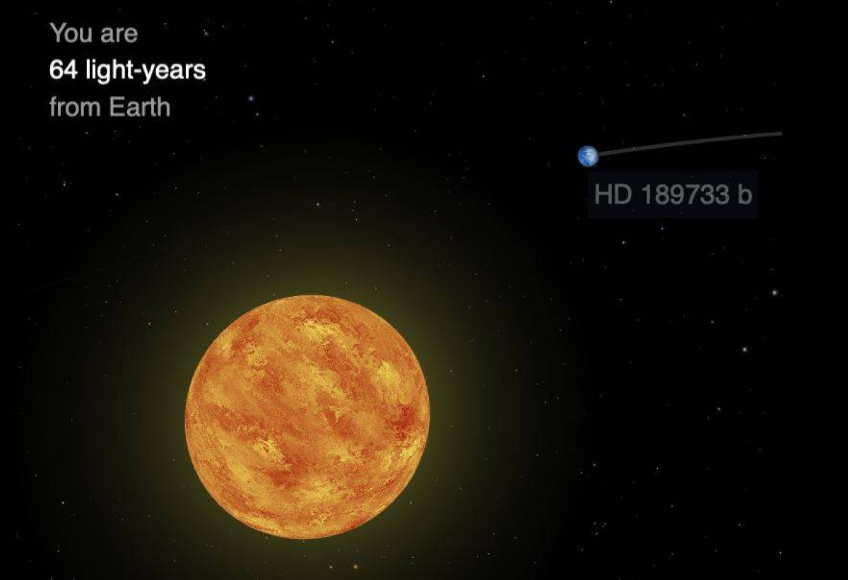 ويعد كوكب HD 189733 b، أكبر من كوكب المشتري بنحو 11% ويبدو من الخارج وكأنه كوكب أزرق لامع - يشبه الأرض تقريبًا - ولكنه يخفي ظروفاً قاتلة في الداخل حيث تتراوح درجات الحرارة عليه بين 919 درجة مئوية إلى 1220 درجة مئوية (1686 درجة فهرنهايت إلى 2220 درجة فهرنهايت)، مما يجعله معاديًا للغاية للحياة.
