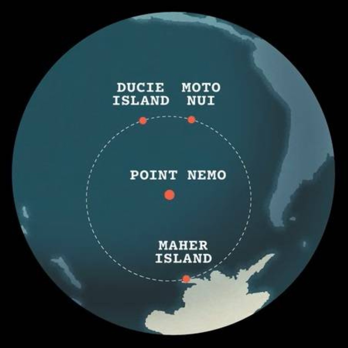 وتقع نقطة نيمو في جنوب المحيط الهادي ومحاطة بأكثر من 1600 كيلومتر من مياه المحيط في كل اتجاه ويعتبر أقرب بشر لهذه النقطة هم رواد الفضاء في محطة الفضاء الدولية.