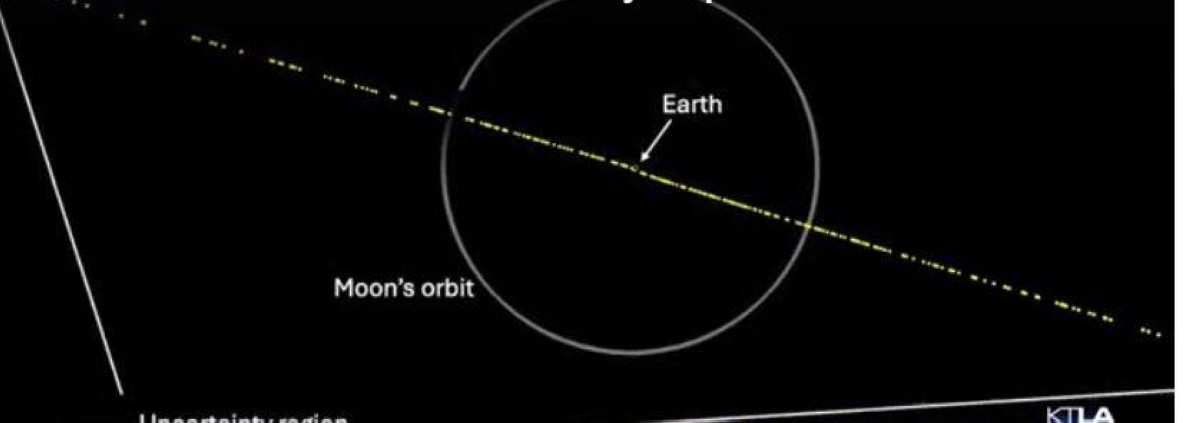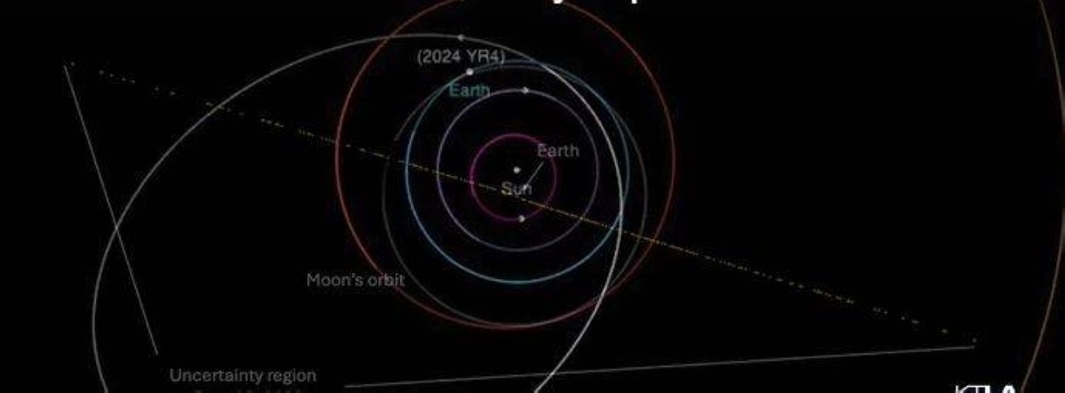 وتظهر الرسوم المتحركة، التي قدمها نظام التنبيه الأخير لتأثير الكويكبات على الأرض الممول من وكالة ناسا، مسار كويكب يتراوح عرضه بين 130 و300 قدم - ويسمى 2024 YR4 - مع وجود فرصة تزيد عن 1% للاصطدام بالأرض في 22 ديسمبر 2032.