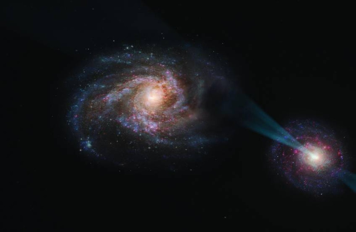 لكن هذه المبارزة الكونية، تخفي مفاجأة صادمة، حيث تمتلك إحدى المجرتين سلاحاً سرياً فتاكاً، يتمثل في «حزمة إشعاعية قاتلة»، تنبعث من نواتها النشطة، المعروفة باسم «الكوازار» (النجم الزائف أو شبه النجم)، وهي المنطقة الغازية الساخنة المحيطة مباشرة بثقب أسود هائل.