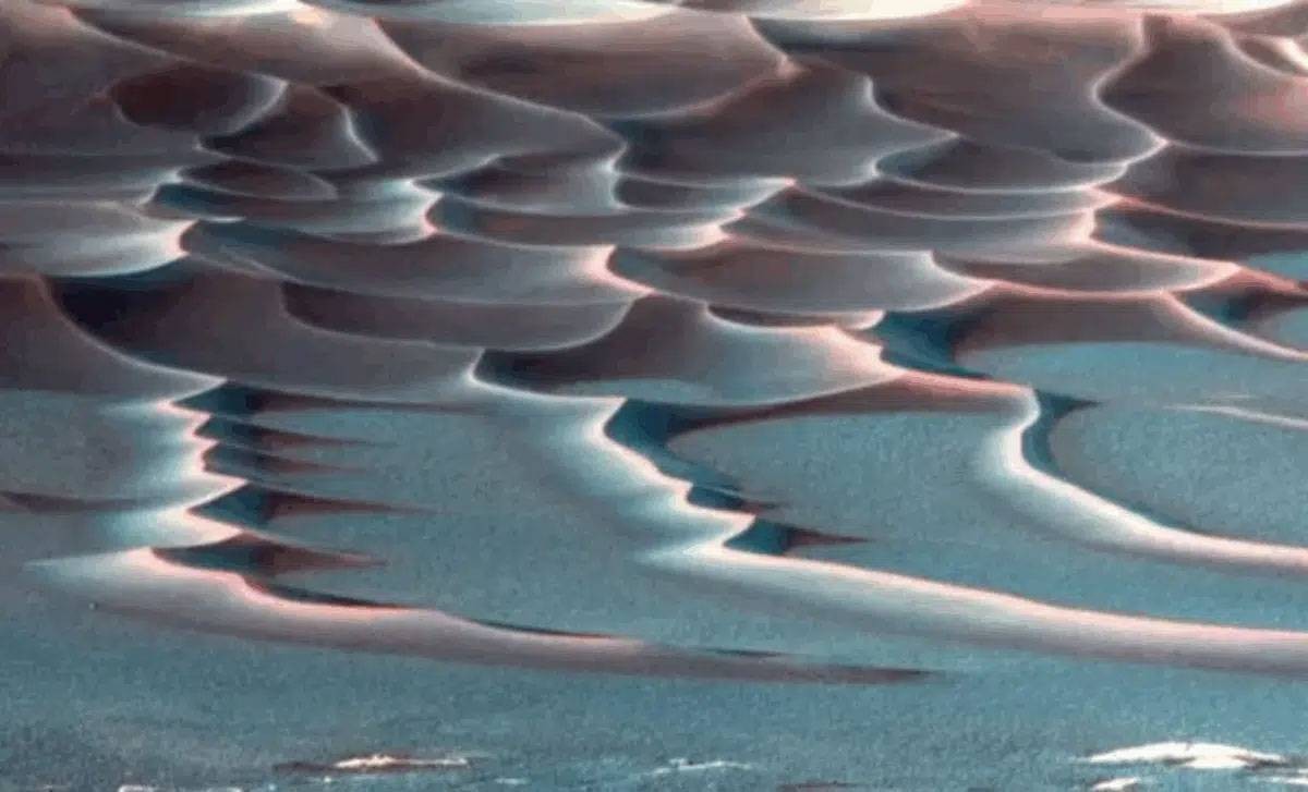 على الرغم من أن رياح المريخ أضعف من نظيراتها على الأرض، فإنها تمتلك القدرة على نحت تضاريس ضخمة وتشكيل مناظر طبيعية مذهلة من الكثبان المتموجة.