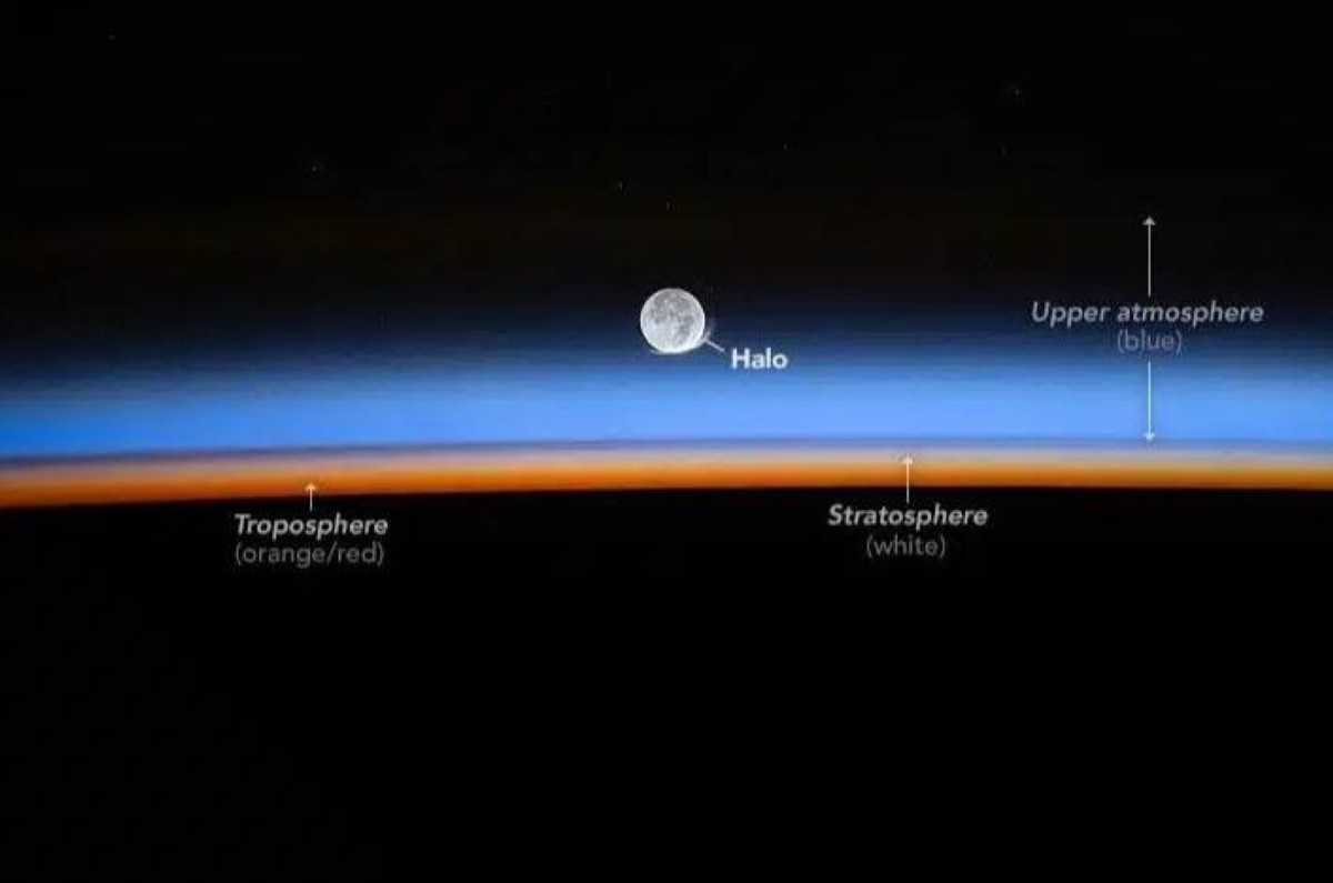 يسمح مدار محطة الفضاء الدولية، فوق الغلاف الجوي للأرض مباشرةً، لرواد الفضاء بمشاهدة هذا التأثير البصري النادر عندما يكون القمر خلف طبقة رقيقة من الجليد في الميزوسفير، وهي الطبقة العليا من الغلاف الجوي للأرض وفق ديلي جالاكسي.