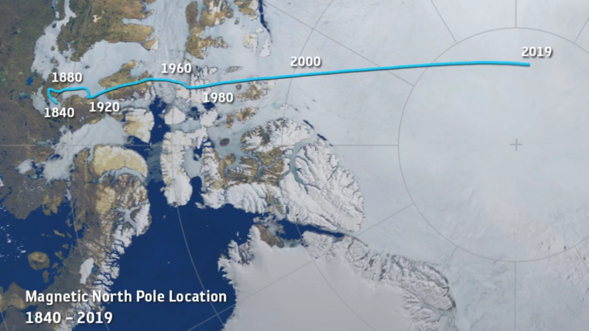 اكتشف القطب الشمالي المغناطيسي لأول مرة عام 1831 في كندا، لكنه منذ ذلك الحين انجرف آلاف الكيلومترات باتجاه الشمال الغربي، في حركة تنوعت بين الانجراف البطيء الانزلاق السريع، حيث شهدت العقود الأخيرة تقلبات لافتة في سرعته.