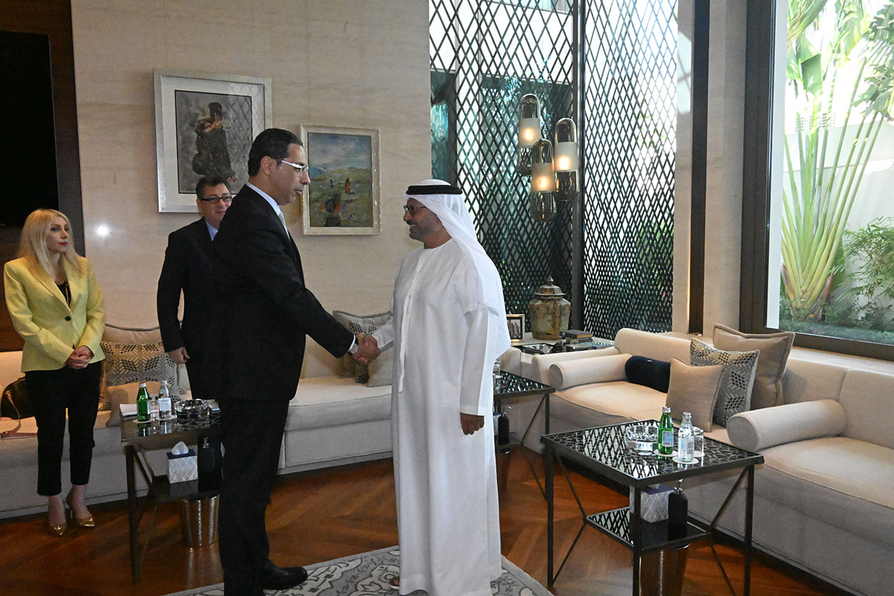 التقى معالي الدكتور أنور بن محمد قرقاش المستشار الدبلوماسي لصاحب السمو رئيس الدولة مع معالي الدكتور كونستانتينوس كومبوس وزير خارجية جمهورية قبرص .