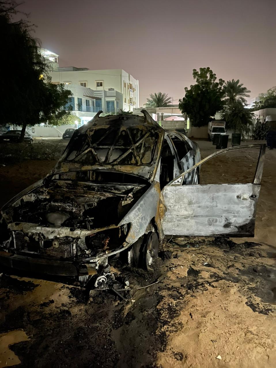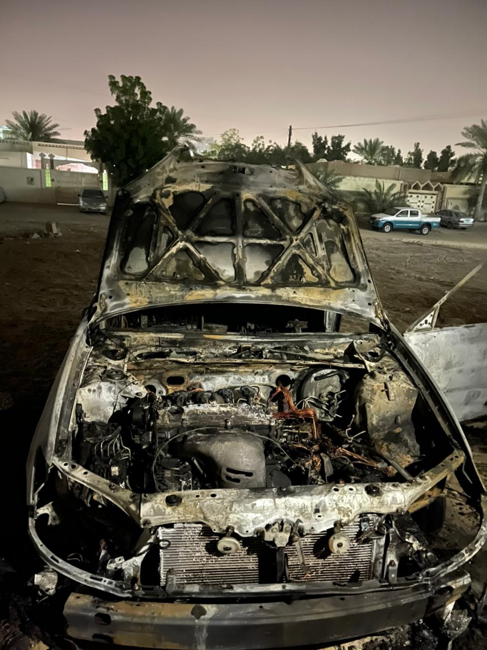 وفي التفاصيل، علقت سيارة محمد الظاهري في الرمال وشب الحريق فيها أثناء محاولته إخراجها، ووثق الظاهري فيديو أثناء احتراق السيارة وبعد أن تم إطفاؤها من قبل الدفاع المدني الذي هرع إلى موقع الحادث فور تلقيهم البلاغ.