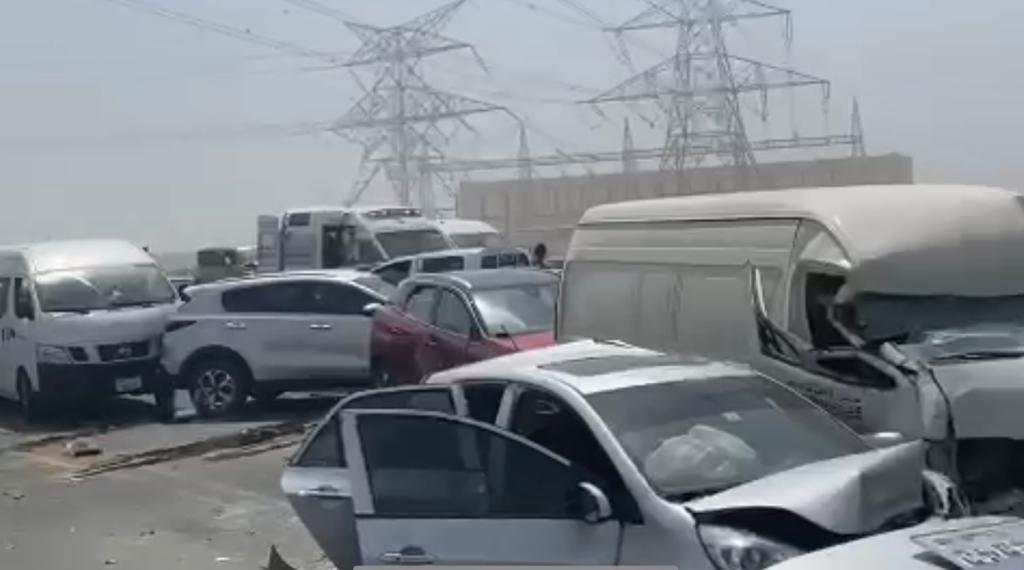 وقال العميد سيف مهيّر المزروعي، مدير الإدارة العامة للمرور، إن بلاغاً ورد إلى ادارة مركز القيادة والسيطرة يفيد بوقوع حادث تصادم بين عدة مركبات على شارع الإمارات بعد جسر القدرة بالاتجاه إلى الشارقة، نتيجة تدني الرؤية الأفقية، وعدم التزام السائقين بترك مسافة أمان كافية، ليقع حادث تصادم نتج عنه توالي حدوث سلسلة من التصادمات بين المركبات الأخرى، وتضرر 34 مركبة.