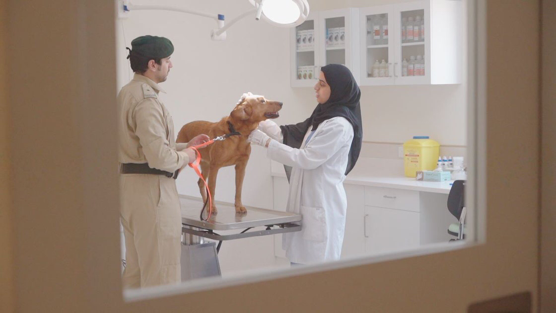 وفيما يختص بالكلاب، أوضح الرائد المزروعي أن لجنة متخصصة تجري فحوصات لغرائز الكلاب للتأكد من قدرتها على أداء مهام العمل الشرطي، ثم تخضع لاختبارات ميدانية في أماكن مظلمة أو ضيقة، داخلية وخارجية، إلى جانب تنفيذ مهمات تتطلب الهجوم والمداهمة وغيره. وأشار إلى استقطابهم لكلاب يتراوح عمرها بين 10 أشهر وعام ونصف، وتستمر في العمل حتى عمرها الافتراضي وهو ما يقارب 7 سنوات، وفي حال تمكنها من الاستمرارية وفقا للخبراء والمتخصصين في التدريب والصحة واللياقة البدنية، فإنها تستمر لأكثر من ذلك.
