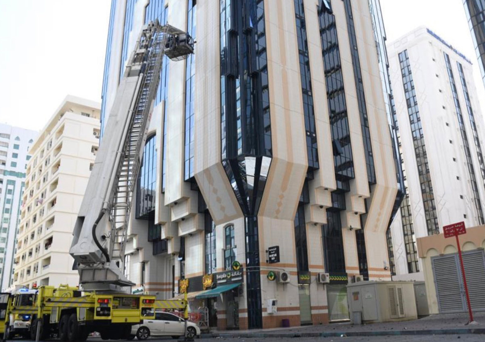 ووفرت هيئة الهلال الأحمر الإماراتي، بالتعاون مع شرطة أبوظبي وهيئة أبوظبي للدفاع المدني، مساكن مؤقتة لسكان البناية التي تعرضت للحريق إلى حين الانتهاء من تأمين البناية والتأكد من توافر شروط السلامة للعودة إلى سكنهم.