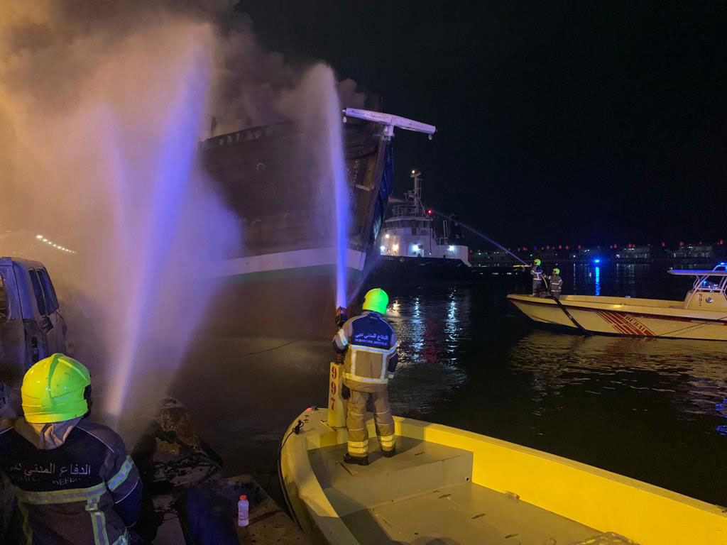 تمكنت فرق الدفاع المدني في دبي من السيطرة على حريق نشب في قارب شحن خشبي بدون إصابات أو وفيات.