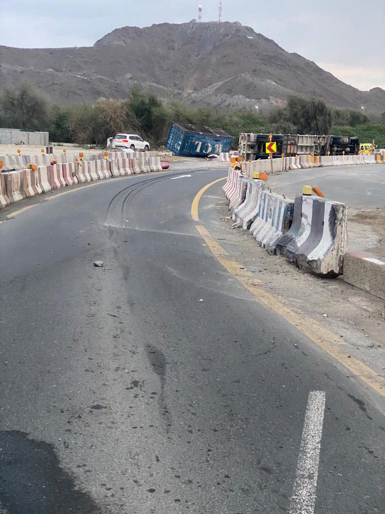 أغلقت القيادة العامة لشرطة الفجيرة شارع يبسة في منطقة سكمكم بالفجيرة قرابة ال 8 ساعات بسبب تدهور شاحنة ثقيلة في ساعة مبكرة من الصباح ، ادى الى اصابة السائق باصابات بليغة نقل على إثرها للعلاج في مستشفى الفجيرة.