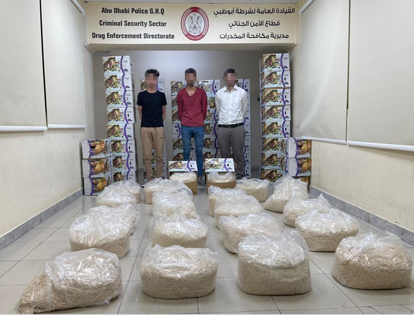 ألقت القيادة العامة لشرطة أبوظبي القبض على عصابة مكونة من 3 أشخاص حاولوا تهريب 2.25 مليون قرص من مخدر "الكبتاجون" وإخفائها داخل صناديق تحتوي على فاكهة المشمش المجفف، قبل الشروع في تهريبها لإحدى الدول المجاورة.