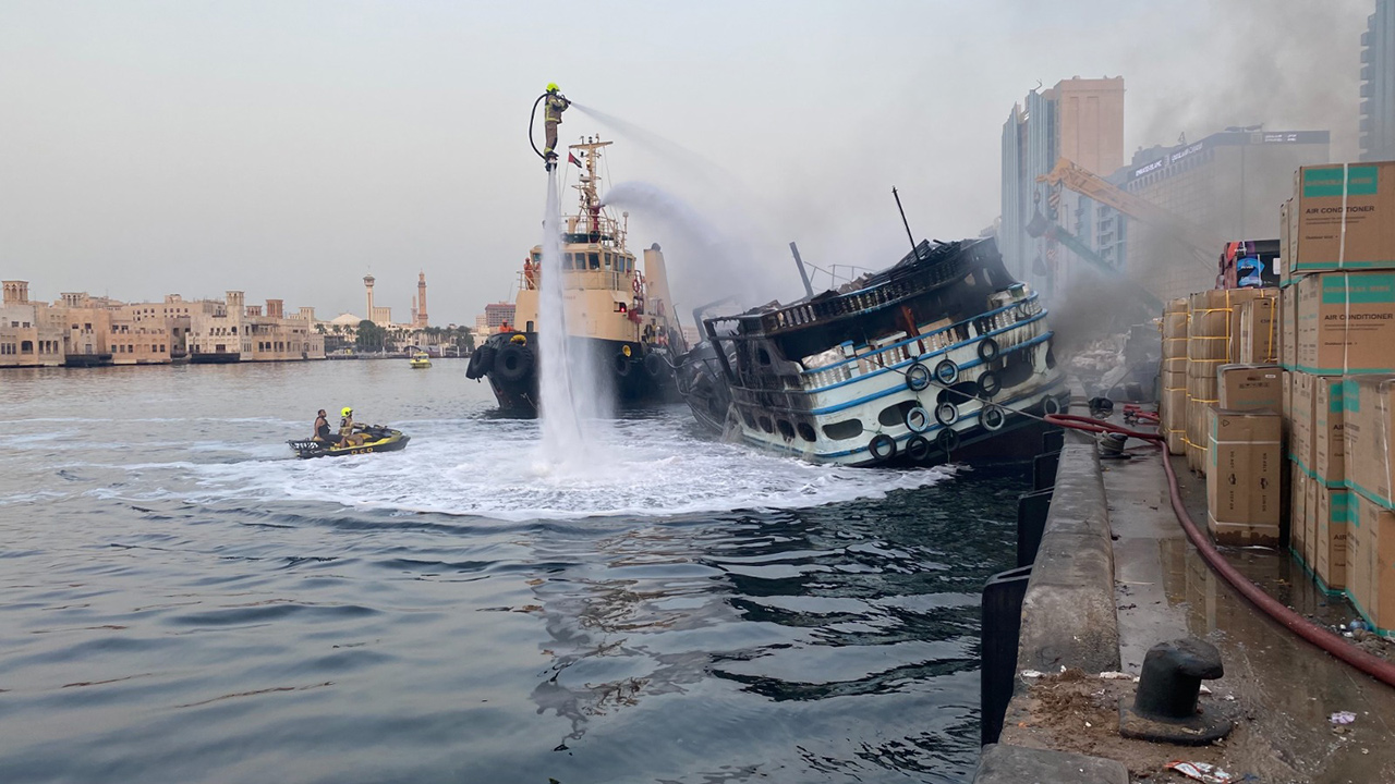 تمكنت فرق الدفاع المدني في دبي من السيطرة على حريق في قارب خشبي بدون إصابات أو وفيات.