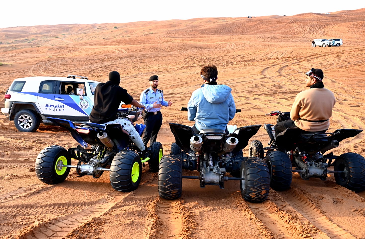 وتحذر شرطة الشارقة قائدي المركبات من هواة الاستعراض من ارتكاب مثل هذه السلوكيات الخاطئة في المناطق الرملية التي تشكل خطورة على حياتهم وحياة الآخرين، مناشدة إياهم بضرورة الالتزام بالقوانين الأمنية، داعية أفراد المجتمع في حال رصدهم لأي من تلك السلوكيات التعاون والإبلاغ الفوري على الرقم المخصص للحالات الطارئة "999".