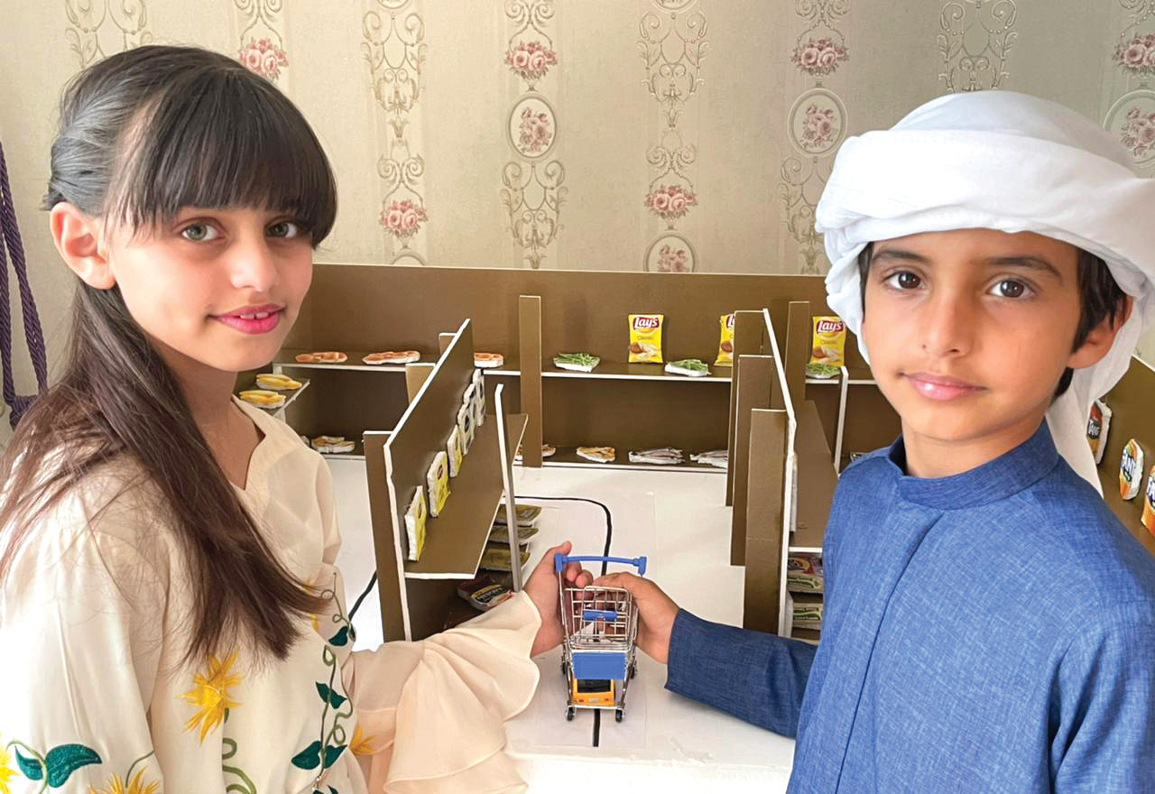 كما أوضح شقيقها حمد الأحبابي، طالب في الصف الثاني بمدرسة العين الأمريكية أن لعربة التسوق الذكية حساسات من الأمام بحيث تصدر تنبيهاً وصوتاً في حال وجود عربة مقابلة أو أشخاص لتمنع التصادم.