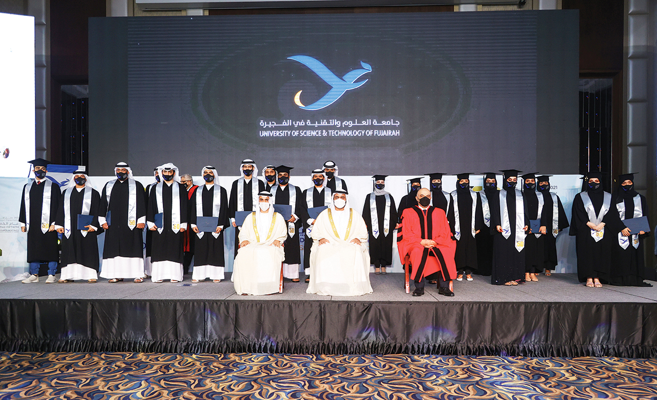 جاء ذلك خلال حضور سمو ولي عهد الفجيرة يرافقه الشيخ مكتوم بن حمد الشرقي، حفل تخريج الدفعة الـ 50 من طلاب وطالبات جامعة العلوم والتقنية في الفجيرة الذي أقيم في مقرها، حيث كرم سموه خريجي الدفعة البالغ عددهم 31 خريجاً وخريجة، من فروع الكليات وبارك لهم إنجازهم العلمي وتمنى لهم دوام التفوق والنجاح في خدمة وطنهم والإسهام الفاعل في مسيرته التنموية.