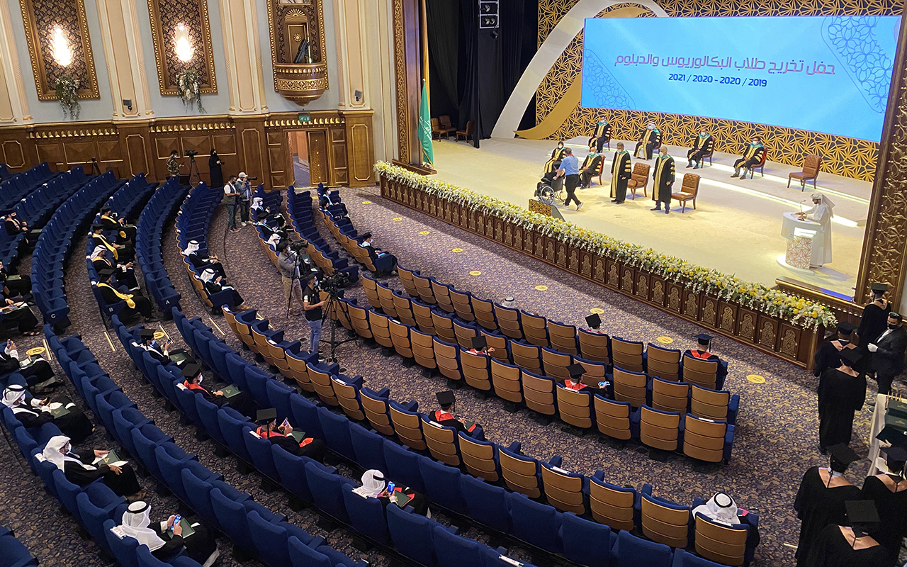 برعاية رئيسها، صاحب السمو الشيخ الدكتور سلطان بن محمد القاسمي عضو المجلس الأعلى حاكم الشارقة، احتفلت جامعة الشارقة، بتخريج طلاب دفعتين من طلابها من خريجي كليات الجامعة المختلفة، من حملة البكالوريوس والدبلوم لفصلي الربيع والصيف للعام الأكاديمي 1019/2020، ومن حملة البكالوريوس لفصل الربيع 2020/2021، بمجموع عام للخريجين بلغ 880، منهم 106 من كلية إدارة الأعمال، و27 من كلية الحوسبة والمعلوماتية، و49 من كلية الآداب والعلوم الإنسانية والاجتماعية، و138 من كلية القانون، و19 من كلية الفنون الجميلة والتصميم، و418 من كلية الهندسة، و50 من كلية الاتصال، و18 من كلية العلوم، و15 من كلية المجتمع، و40 من كلية الشريعة والدراسات الإسلامية. وقد جرى توزيع الحضور من الخريجين إلى 5 مجموعات متتالية، وذلك ضمن متطلبات الإجراءات والتدابير الاحترازية التي وضعتها الجامعة لاحتفالات التخريج، لاتقاء العدوى من فيروس «كوفيد 19».