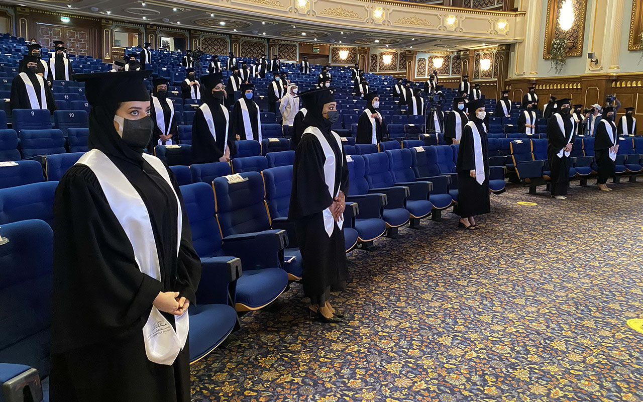 احتفلت جامعة الشارقة بتخريج طالباتها من كليات الجامعة المختلفة من حملة البكالوريوس والدبلوم لفصلي الربيع والصيف للعام الأكاديمي: 2019/2020، ومن حملة البكالوريوس لفصل الخريف والربيع: 2020/2021، وذلك بمقر قاعة المدينة الجامعية، حيث بلغ المجموع العام للخريجات 1647 خريجة، منهن 173 من كلية إدارة الأعمال، و21 من كلية الحوسبة والمعلوماتية، و402 من كلية الآداب والعلوم الإنسانية والاجتماعية، و144 من كلية القانون، و148 من كلية الفنون الجميلة والتصميم، و385 من كلية الهندسة، و214 من كلية الاتصال، و102 من كلية العلوم، و18 من كلية المجتمع، و40 من كلية الشريعة والدراسات الإسلامية، وذلك برعاية صاحب السمو الشيخ الدكتور سلطان بن محمد القاسمي عضو المجلس الأعلى للاتحاد حاكم الشارقة ورئيس جامعة الشارقة.