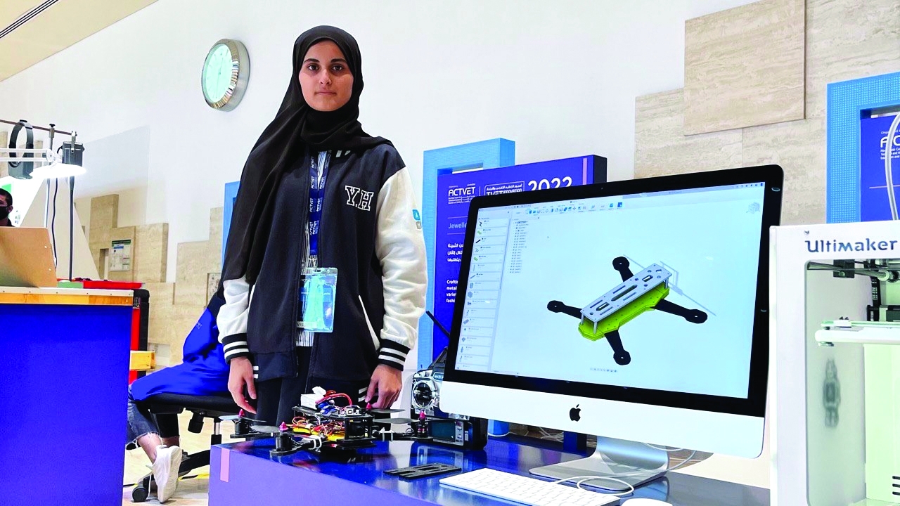 توصلت اليازي إسماعيل الحوسني من ثانوية التكنولوجيا التطبيقية الصف 12، إلى ابتكار طائرة «درون»، صممت وطبعت بوساطة طابعة ثلاثية الأبعاد، عدا البطارية، وتم الانتهاء من النموذج الأول للطائرة وعرض المشروع على هامش منتدى القادة لأسبوع التعليم التقني والابتكار 2022.