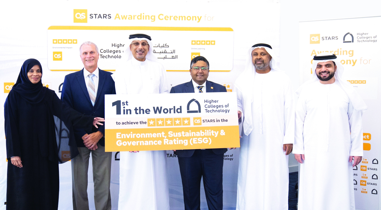 ومن جهته أشاد البروفيسور عبداللطيف الشامسي، مدير مجمع كليات التقنية العليا، بالتصنيف الرائد من قبل QS Stars العالمية من فئة 5 نجوم، الذي حصلت عليه كليات التقنية العليا عن فئة الاستدامة البيئية كأول مؤسسة تعليم عالٍ عالمياً تحصل عليه، وعن فئة التعلم عن بعد، بما يمثل تأكيداً جديداً على ريادة الكليات عالمياً، مشيراً إلى أن كل ذلك تحقق بفضل استراتيجية الكليات التي تلتزم بالأجندة الوطنية للدولة الرامية للوصول بمؤسسات التعليم إلى أعلى مستويات التنافسية والريادة العالمية.