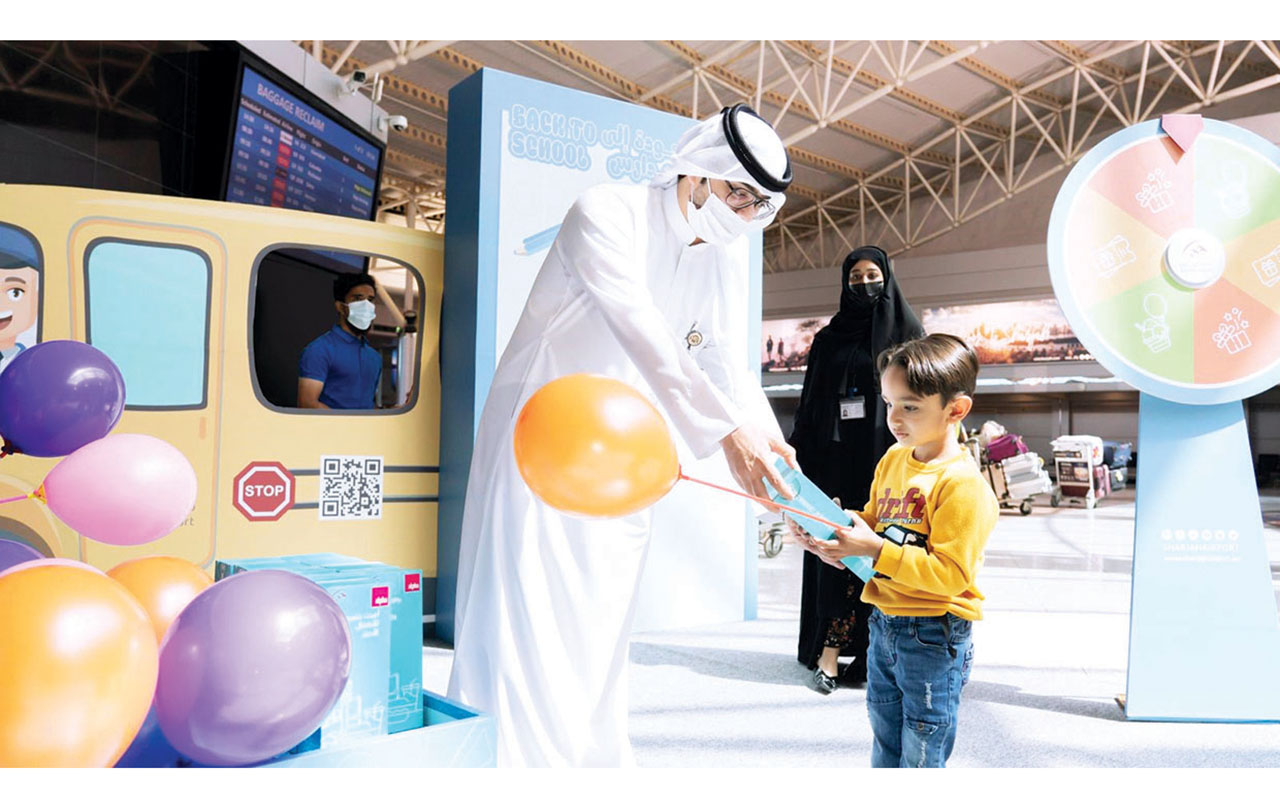 استقبل مطار الشارقة الأطفال المسافرين القادمين مع عائلاتهم إلى الدولة، احتفاءً بهم بمناسبة انتهاء الإجازة الصيفية والاستعداد لبدء العام الدراسي الجديد 2022-2023، متمنين لهم دوام النجاح والتوفيق في مسيرة التحصيل الدراسي، وذلك في إطار فعالية «العودة إلى المدارس»، الممتدة على مدار 3 أيام اعتباراً من 24 إلى 26 أغسطس الجاري.