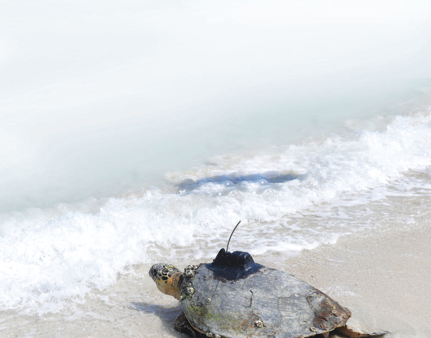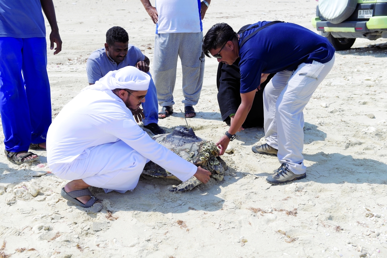 ويمتد موسم تعشيش سلاحف منقار الصقر من شهر مارس إلى شهر يونيو، ويتم الحفاظ على بيضها في حظائر لحمايتها من الحيوانات المفترسة مثل الثعالب ونورس البحر. وتعتبر السلاحف البحرية مؤشراً على صحة النظام البيئي، من أجل هذا قامت بلدية دبي بتخصيص برامج مراقبة خلال موسم التعشيش وبتطوير برنامج خاص بتتبع السلاحف عبر الأقمار الصناعية.