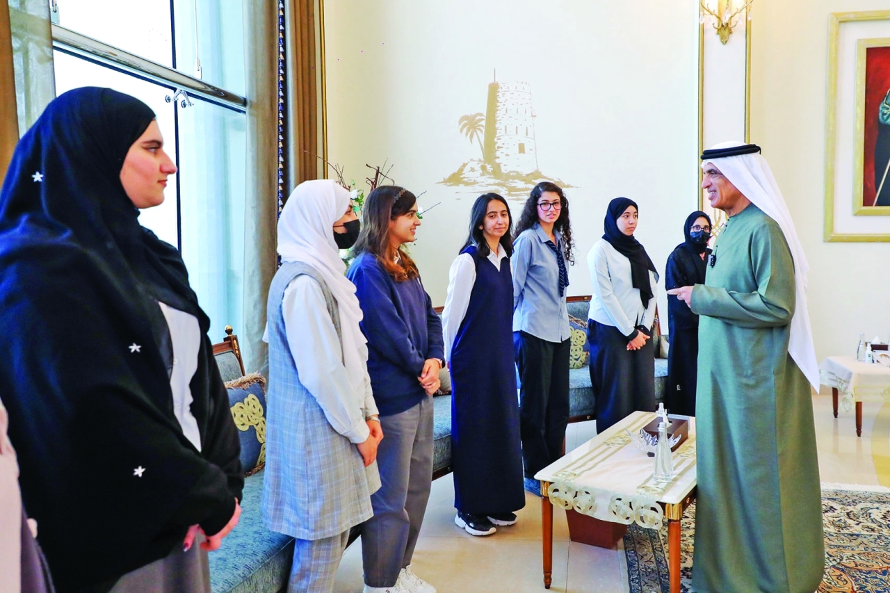 جاء ذلك خلال استقبال سموه، في مدينة صقر بن محمد، مجموعة من أبنائه من الطلبة المتفوقين في الصف الحادي عشر من المدارس الحكومية والخاصة في الإمارة، في لقاء أبوي جمع سموه بهم لمتابعة أدائهم التعليمي والتعرف على احتياجاتهم التعليمية وتطلعاتهم المستقبلية للمرحلة الجامعية.