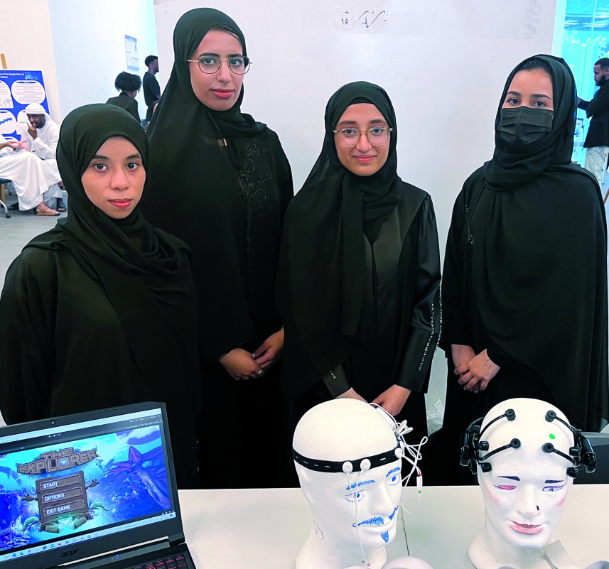 ومن بين المشروعات البارزة في المعرض «تطبيقات الإشارة الفسيولوجية والتغير الديناميكي» للطالبات عائشة الظنحاني، وسلامة الهاملي، ولطيفة بن كتة، وسلمى أحمد من قسم الهندسة الطبية الحيوية، وهو ابتكار طريقة جديدة لعلاج وإعادة تأهيل مرضى السكتة الدماغية، وتتضمن خطة العلاج لعبة حركية يتم التحكم فيها بوساطة مستشعرات حركة جهاز الواقع الافتراضي، وتستجيب اللعبة الحركية لمستويات توتر المريض.
