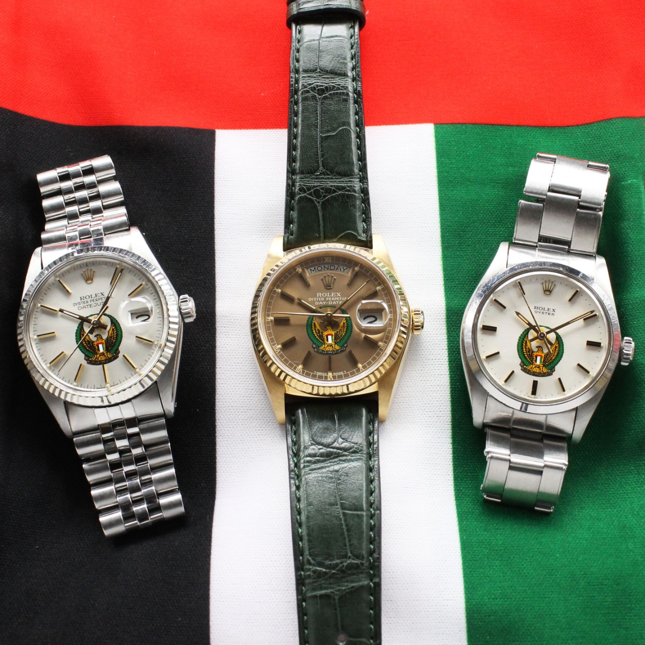 كانت أجمل ساعة رأيتها في حياتي هي ساعة "رولكس جي إم تي ماستر" لعام 1971 التي تحمل شعار وزارة الدفاع الإماراتية. كانت هدية من الشيخ محمد بن راشد عندما كان شاباً إلى أحد التجار المحليين في دبي. أحضر ابن هذا التاجر الساعة إلى متجرنا منذ نحو سبع سنوات بغرض الصيانة. كان عمر الساعة حينها ما يقارب الأربعة عقود، ولكنها كانت مثالية من جميع النواحي. أعربت للأبن بعد اجتماعنا الأول عن استعدادي لشراء الساعة إذا فكر في بيعها، ثم انتهى لقاؤنا، ودعنا بعضنا وبقي الحال على ذلك.