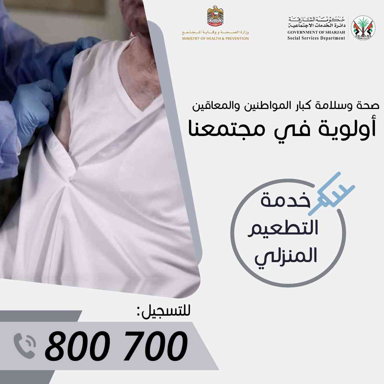 بدأت، اليوم، دائرة الخدمات الاجتماعية بالتعاون مع منطقة الشارقة الطبية، استقبال طلبات تطعيم كوفيد 19 لكبار المواطنين من المواطنين والمعاقين والمرضى النفسيين وذويهم في المنازل، بعد الانتهاء من تدريب الكادر الطبي التابع للدائرة بالتعاون مع مراكز الرعاية الصحية الأولية على الإجراءات الطبية المعتمدة للتطعيم بكافة مدن إمارة الشارقة، حيث سيتم توفير خدمة تقديم اللقاح بالمنازل من خلال إدارة خدمات كبار المواطنين والمعاقين والمرضى النفسيين وذويهم بمدينة الشارقة وافرع دائرة الخدمات الاجتماعية ( الذيذ، المدام، البطائح، مليحة، بخورفكان، كلباء، دبا الحصن، للحمرية).