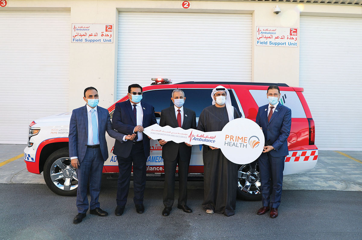 قدمت مجموعة برايم للرعاية الصحية هدية لمؤسسة دبي لخدمات الإسعاف عبارة عن مركبة إسعافية متطورة دعماً لأسطولها الإسعافي وطواقم المسعفين من خط الدفاع الأول.