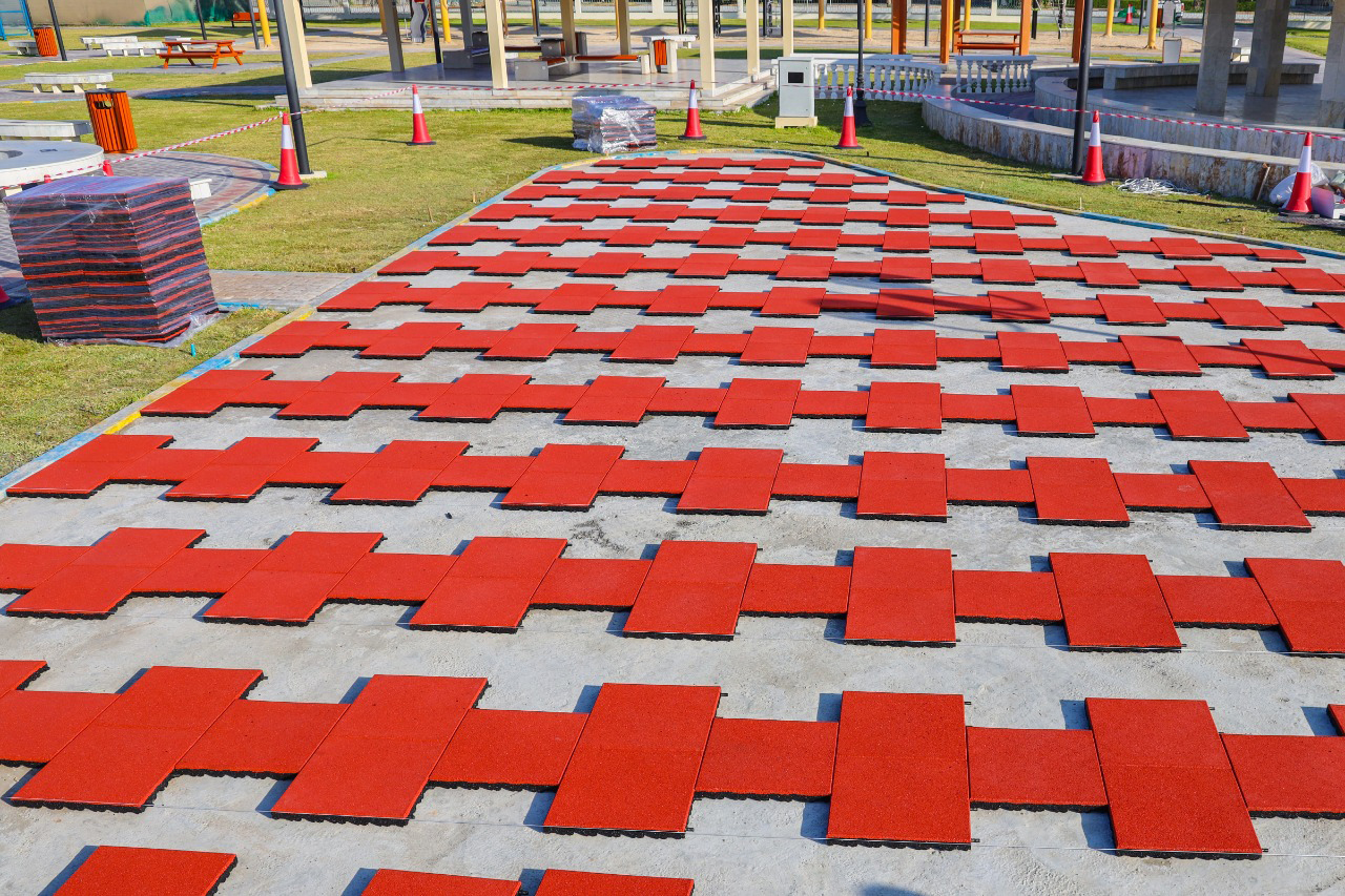ومن منطلق تبنّي أحد تطبيقات الاستدامة في مشاريع البينة التحتية في إمارة أبوظبي، وفقاً لأفضل الممارسات العالمية، تم التعاون مع مركز إدارة أبوظبي لإدارة النفايات «تدوير»، لإعادة استخدام المطاط المعاد تدويره من مخلفات إطارات المركبات، في إنتاج البلاط المطاطي، ليتم استخدامه في مناطق لعب الأطفال، والملاعب الرياضية في المنتزهات والمرافق الترفيهية، حيث تم إطلاق المشروع في حديقة ربدان.