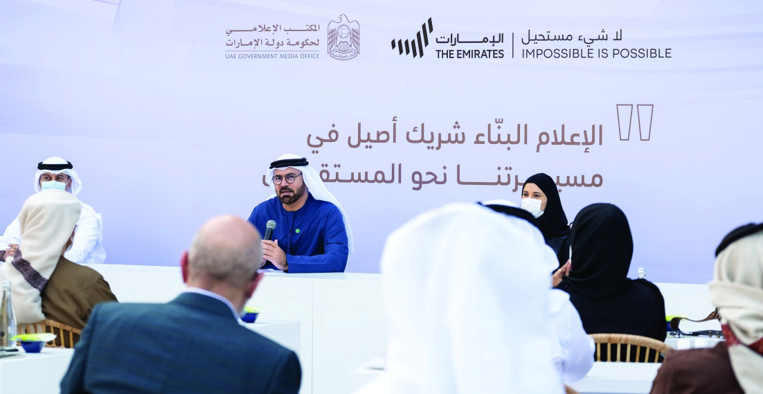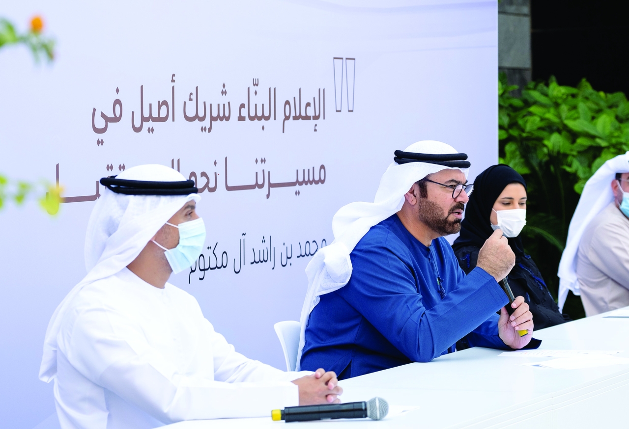 محمد القرقاوي وأحمد بالهول خلال المؤتمر الصحفي أمس | البيان