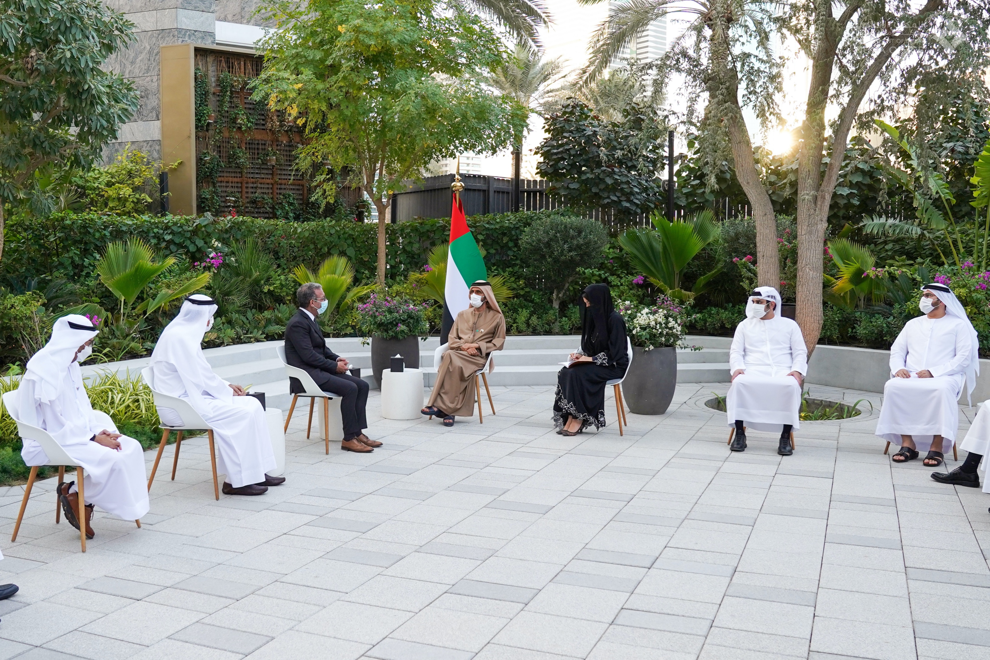 حضر اللقاء معالي محمد بن عبدالله القرقاوي وزير شؤون مجلس الوزراء ومعالي ريم بنت إبراهيم الهاشمي وزيرة دولة لشؤون التعاون الدولي ومعالي محمد إبراهيم الشيباني مدير عام ديوان صاحب السمو حاكم دبي ومعالي الدكتور على راشد النعيمي وسعادة مروان المهيري عضوا المجلس الوطني الاتحادي وسعادة خليفة سعيد سليمان مدير عام دائرة التشريفات والضيافة في دبي.