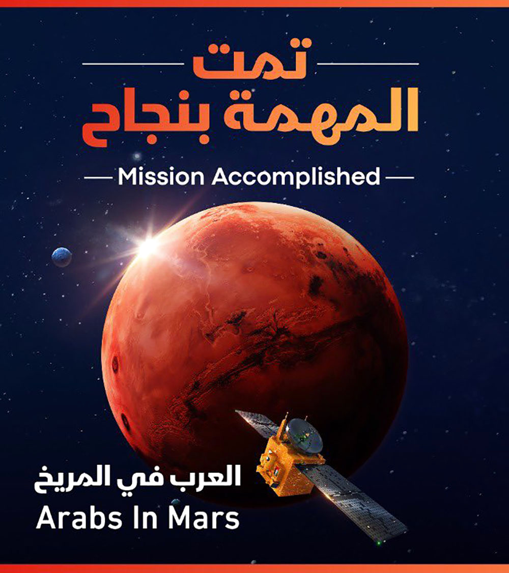 وقال خليفة الزفين، الرئيس التنفيذي، مؤسسة مدينة دبي للطيران ودبي الجنوب، يحمل نجاح أول مهمة فضائية إماراتية باسم الأمة العربية إلى الكوكب الأحمر دلالات كثيرة، ومن أهمها استئناف الحضارة العربية من جديد على أرض دولة الإمارات العربية المتحدة، انسجاماً مع الرؤى الحكيمة لقيادتنا الرشيدة.