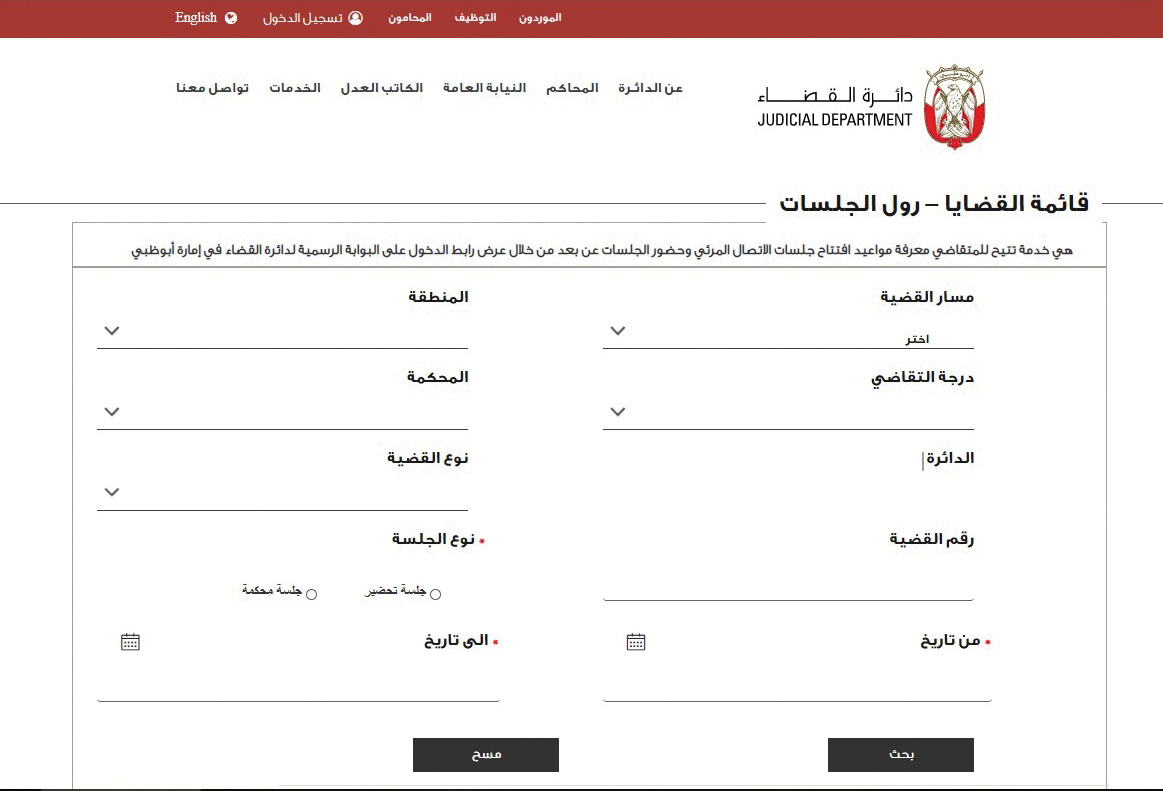 وفرت دائرة القضاء أبوظبي عبر موقعها الالكتروني الرسمي، خدمة «رول الجلسات الالكتروني» وذلك في إطار جهودها المستمرة والحثيثة في تطوير منظومة خدماتها العدلية، وتسهيل إجراءات دخول أطراف التقاضي إلى نظام المحاكمات «عن بعد» الذي تم تعميمه في ظل الظروف التي يمر بها العالم من جراء جائحة «كورونا».