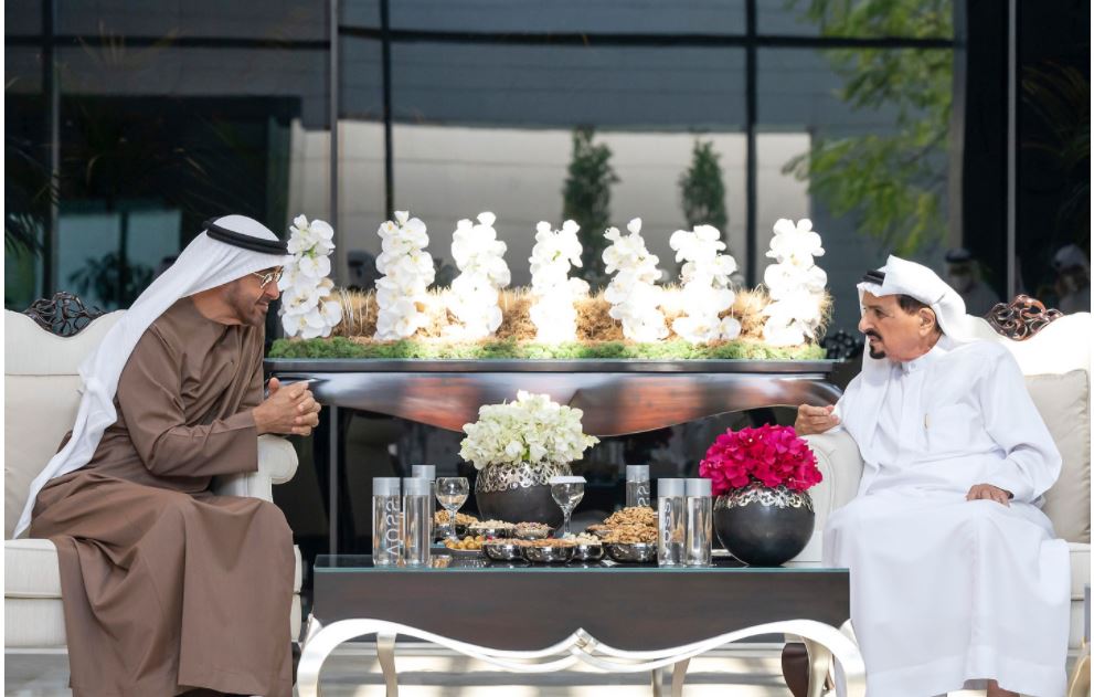التقى صاحب السمو الشيخ محمد بن زايد آل نهيان ولي عهد أبوظبي نائب القائد الأعلى للقوات المسلحة ــ في استراحة الصفيا بمنطقة مشيرف في عجمان.. صاحب السمو الشيخ حميد بن راشد النعيمي عضو المجلس الأعلى حاكم عجمان.