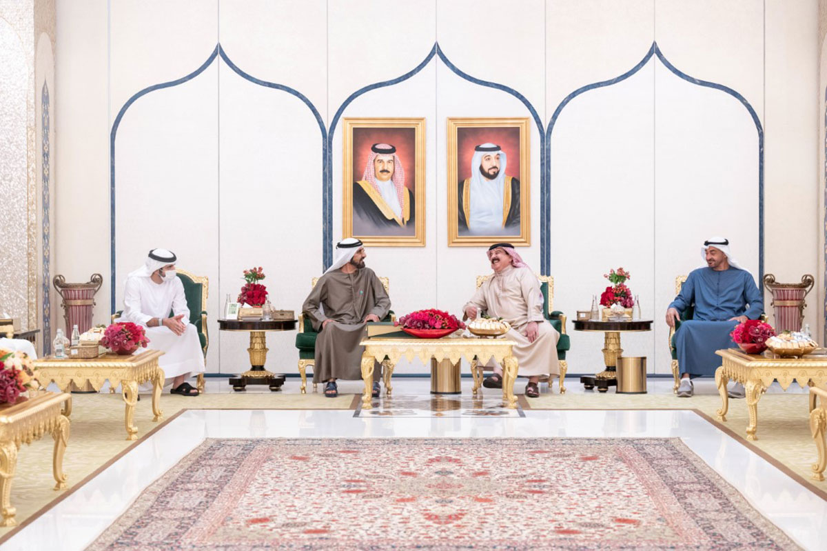 وعبر جلالة الملك حمد بن عيسى عن سعادته بلقاء صاحب السمو الشيخ محمد بن راشد آل مكتوم وصاحب السمو الشيخ محمد بن زايد آل نهيان مؤكدا متانة العلاقات والروابط الأخوية المشتركة بين البلدين والشعبين الشقيقين والحرص المشترك على تعزيزها بما يسهم في تحقيق تطلعاتهما.