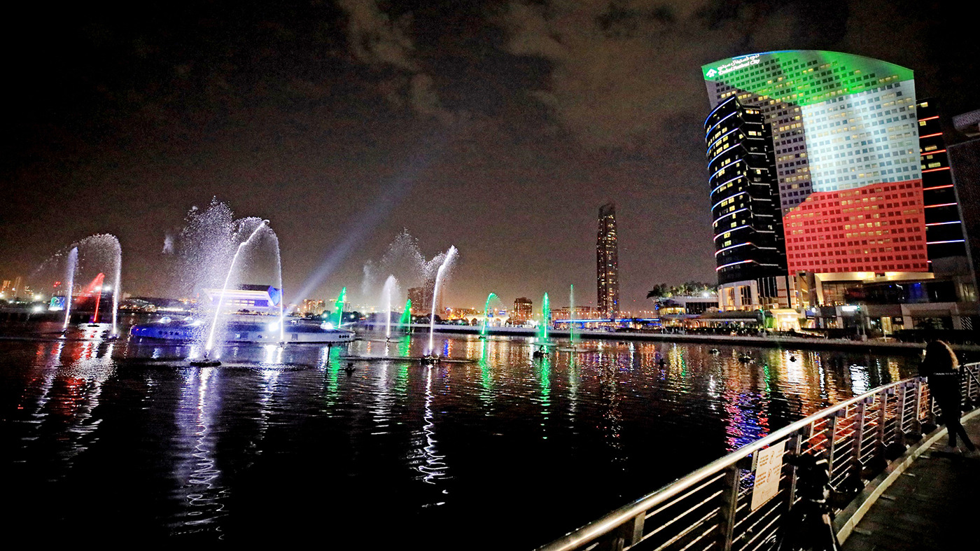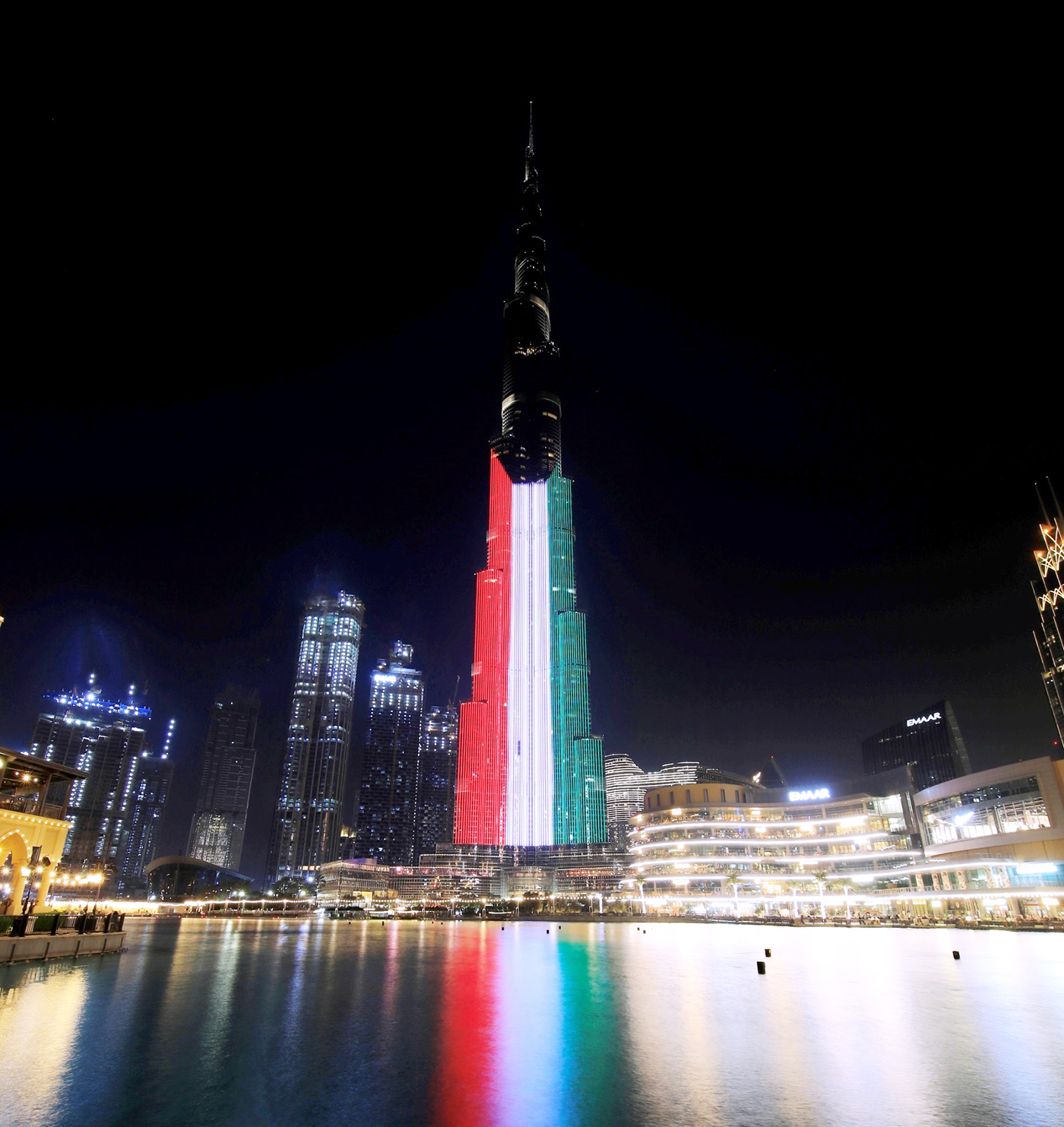 وشهدت بعض أبرز الوجهات والمعالم السياحية في دبي، مساء أمس، مظاهر احتفالية واكتست بالألوان الحمراء والبيضاء والسوداء والخضراء، حيث تزين «برج خليفة» بإضاءة كاملة للعلم الكويتي.. كما استمتع زوار «برواز دبي» برؤية علم الكويت المضاء على جوانب هذا الصرح المميز من 23 حتى 25 فبراير الجاري.